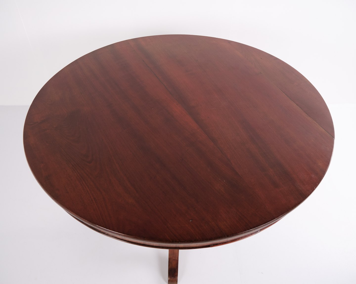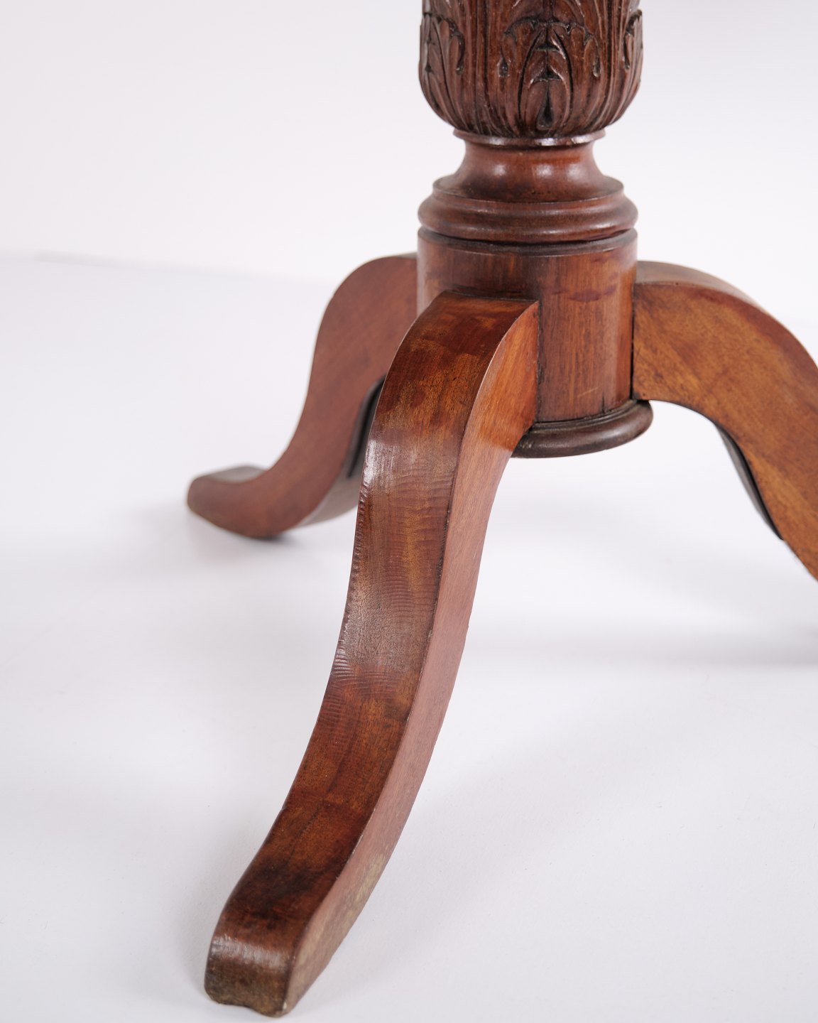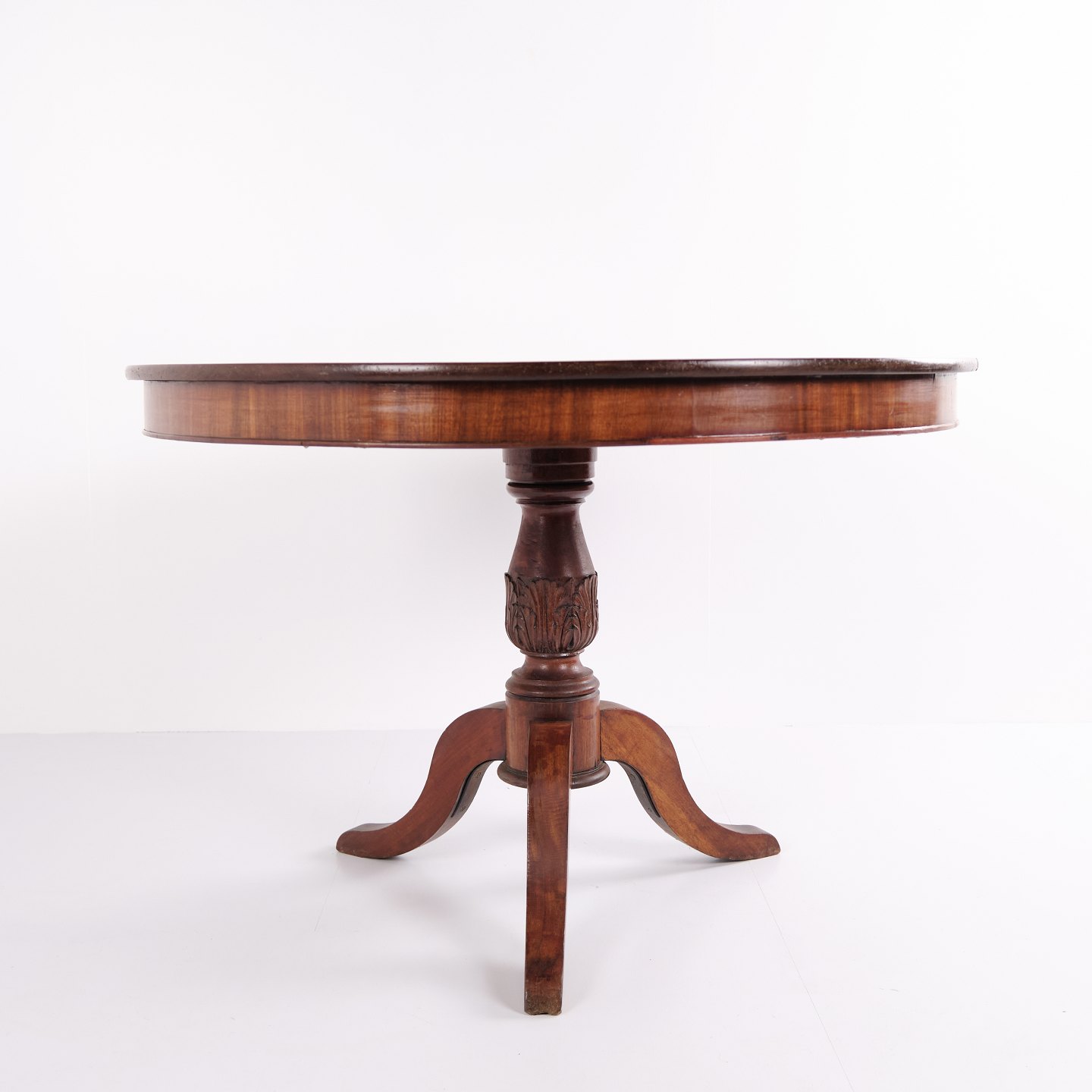 Entrance or lobby table from the 19th century, crafted in mahogany as a classic pedestal table with a round top. A decorative and period-characteristic piece suitable for hallways, lobbies, or living spaces. Solid wood and elegant craftsmanship.