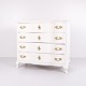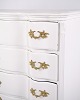 Antique baroque chest of drawers from the 1760s, painted white with brass handles. Four drawers and a distinctive baroque design. Historical and decorative piece of furniture.