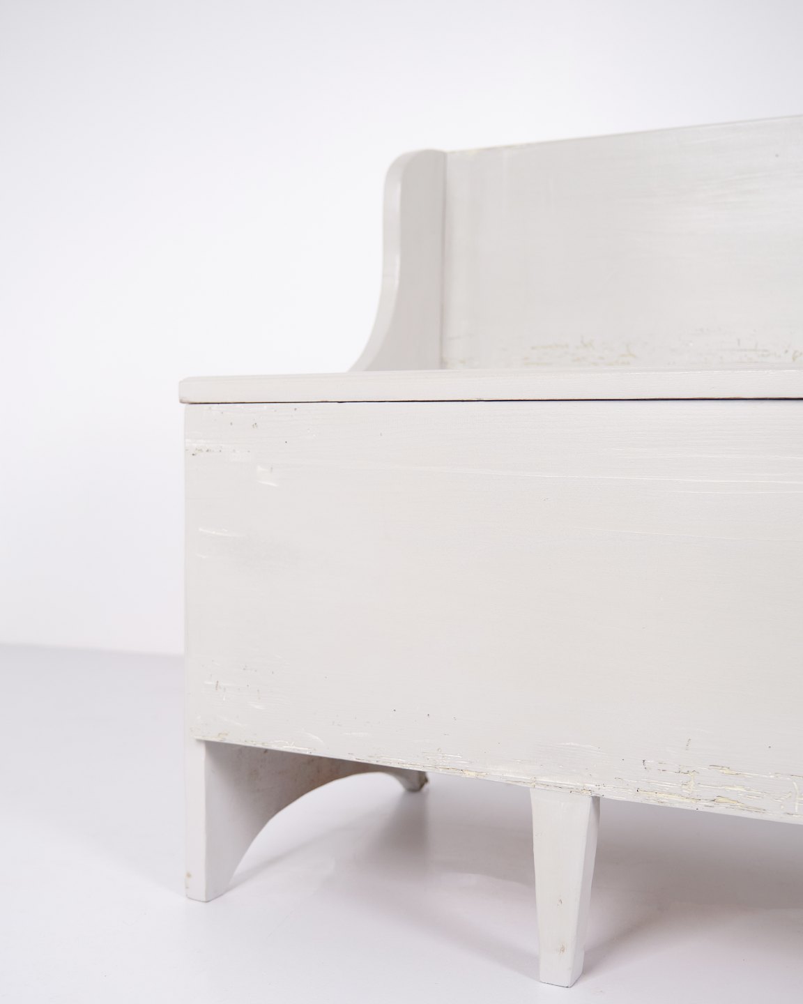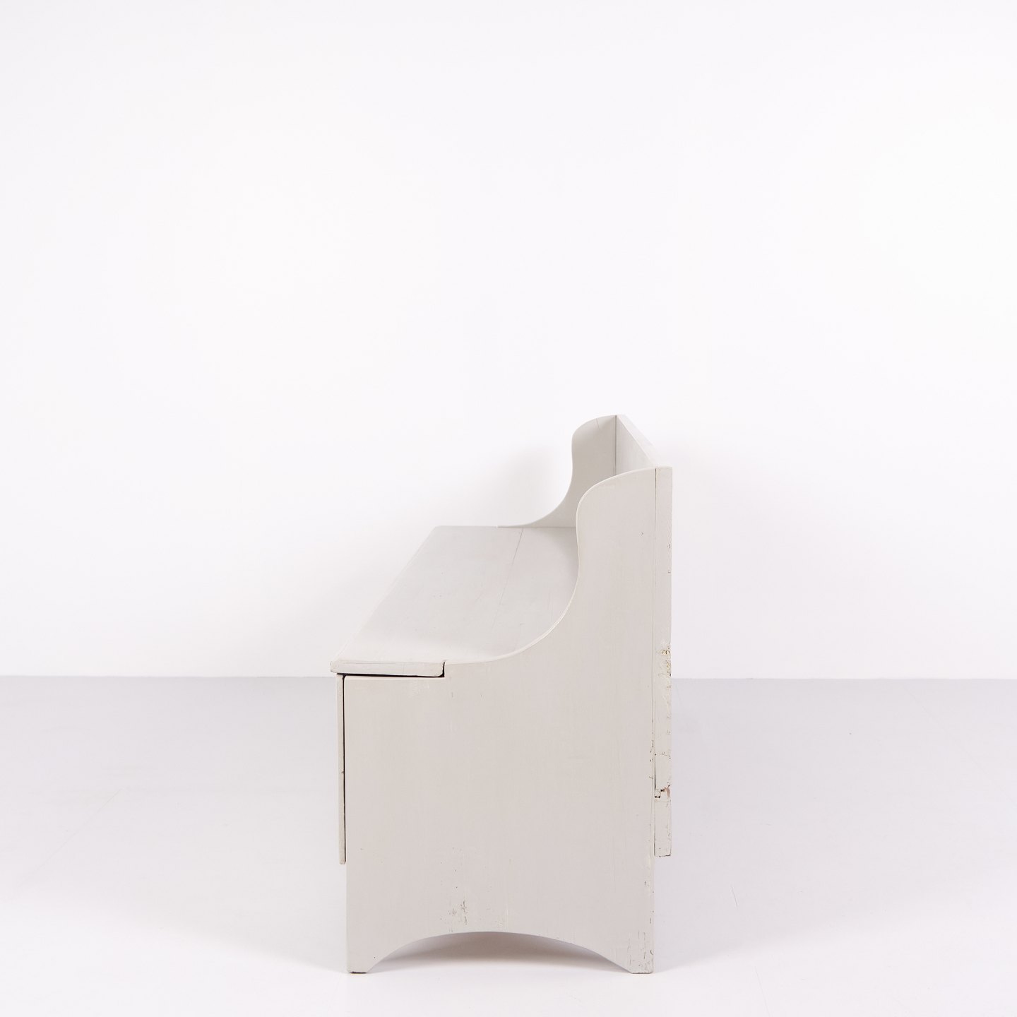 Antique storage bench from the 1890s in grey-painted pine wood. Antique storage bench from the 19th century.