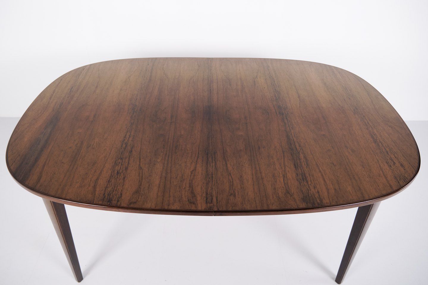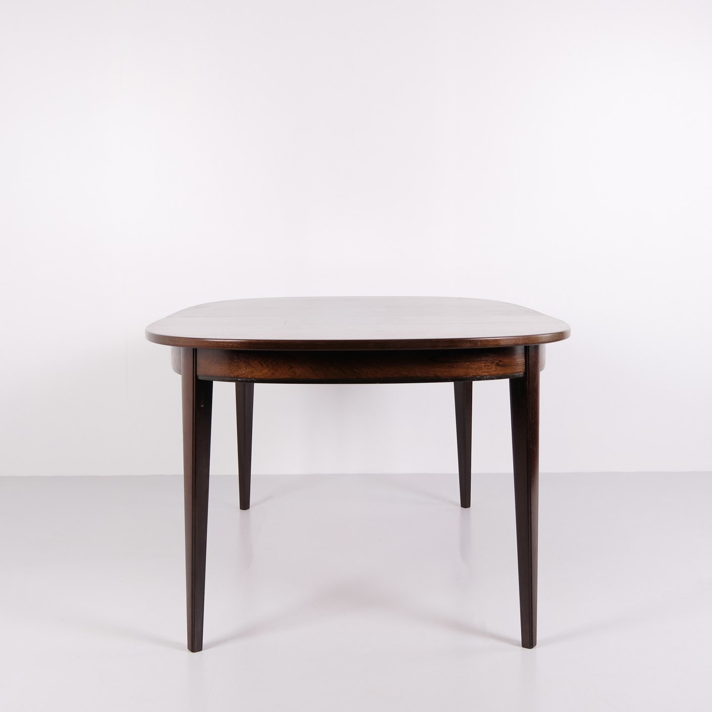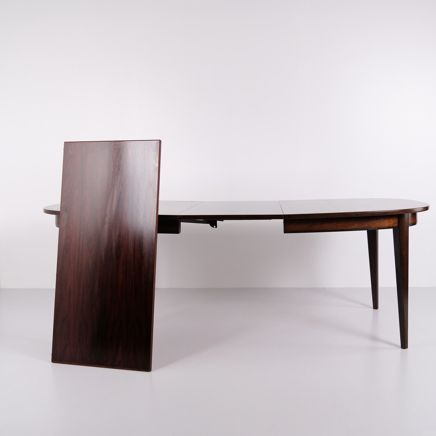 Omann Jun Model 55 dining table by Gunni Omann in rosewood with extension leaves from the 1960s. Danish design rosewood dining table.