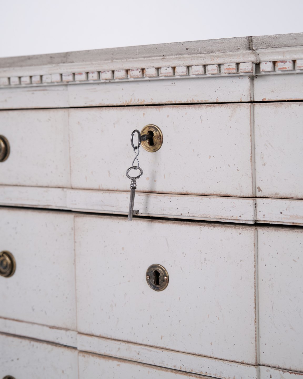 A Pair of Gustavian Chests of Drawers in Grey-White Paint with Patina, Year 1790