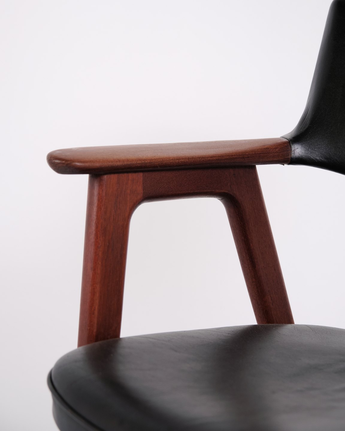 Erik Kirkegaard armchair model 43 in teak and black leather from Høng Stolefabrik. Danish design from the 1950s with an elegant design language.