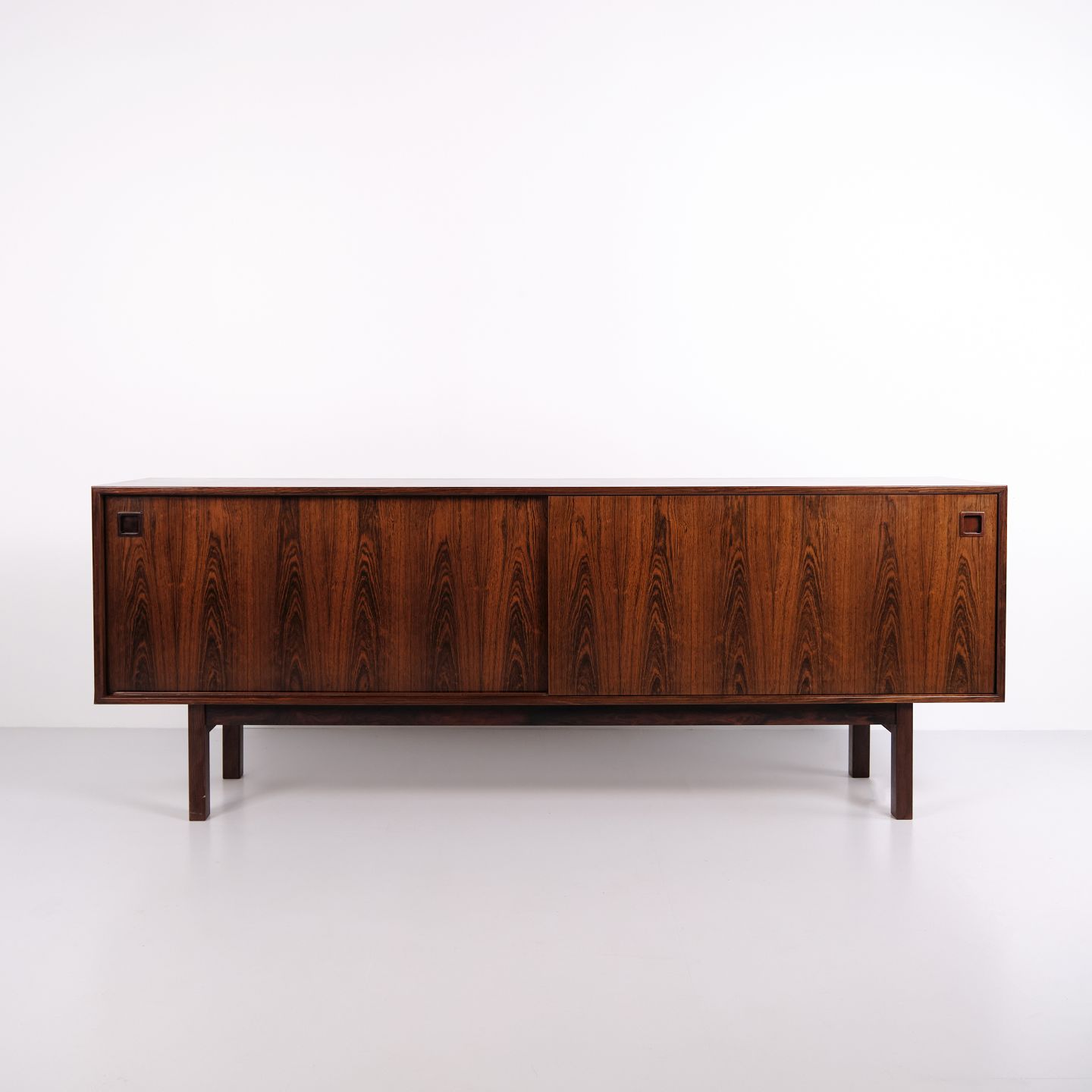 Sideboard, model 21, designed by Gunni Omann and produced by Omann Jun Møbelfabrik in Denmark during the 1960s. The piece is crafted in rosewood and represents a classic example of Danish furniture design, characterized by clean lines, functionality and refined cabinetmaking details.