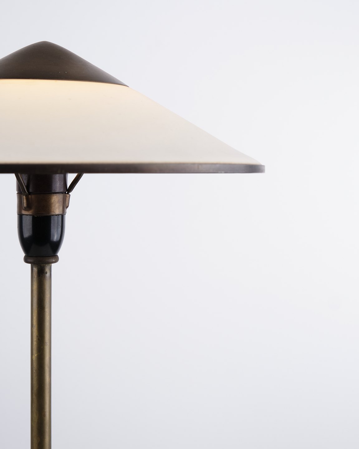 Niels Thykier Kongelys table lamp in brass with off-white shade. Classic Danish design with an elegant and functional light.