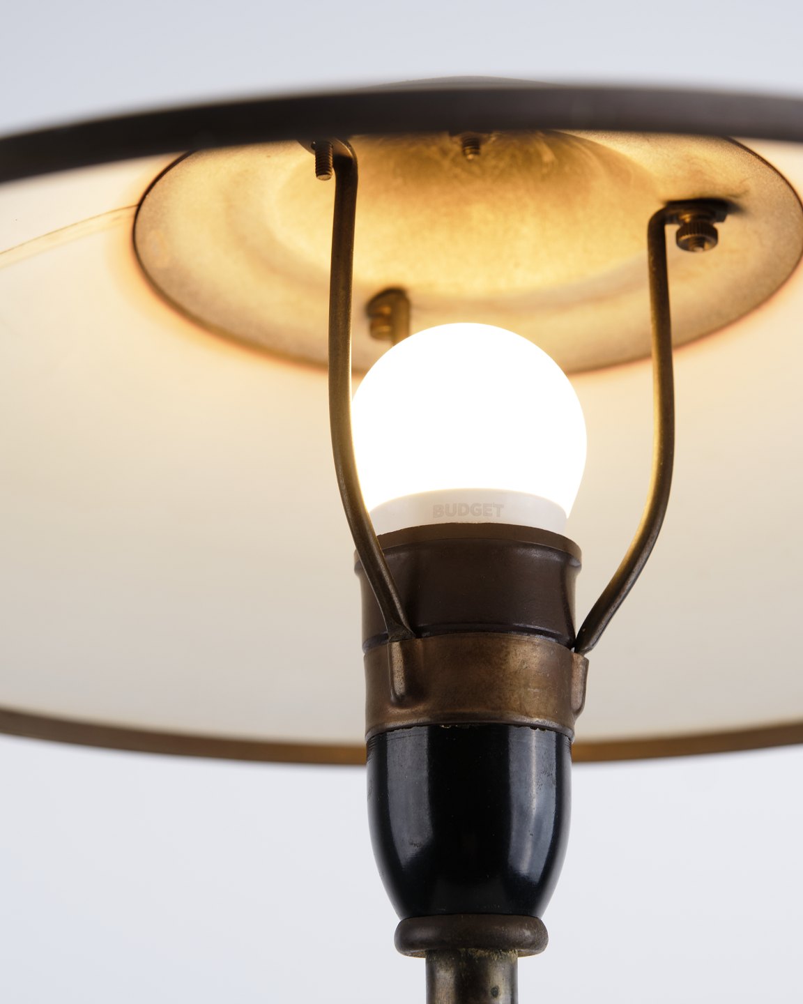 — Material: Brass and off-white shade