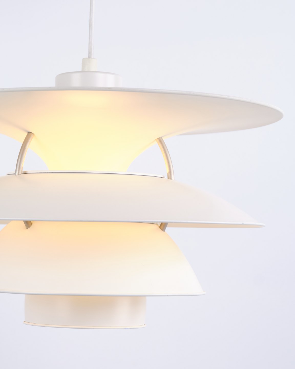 Charlottenborg pendant, model PH 5-4½, designed by Poul Henningsen and produced by Louis Poulsen in the 1980s. The lamp is based on the 4-shade system introduced in 1931 with the purpose of increasing light output and creating more efficient illumination in the room. The construction directs a greater amount of light horizontally, providing better lighting of walls and surroundings compared to traditional 3-shade lamps.