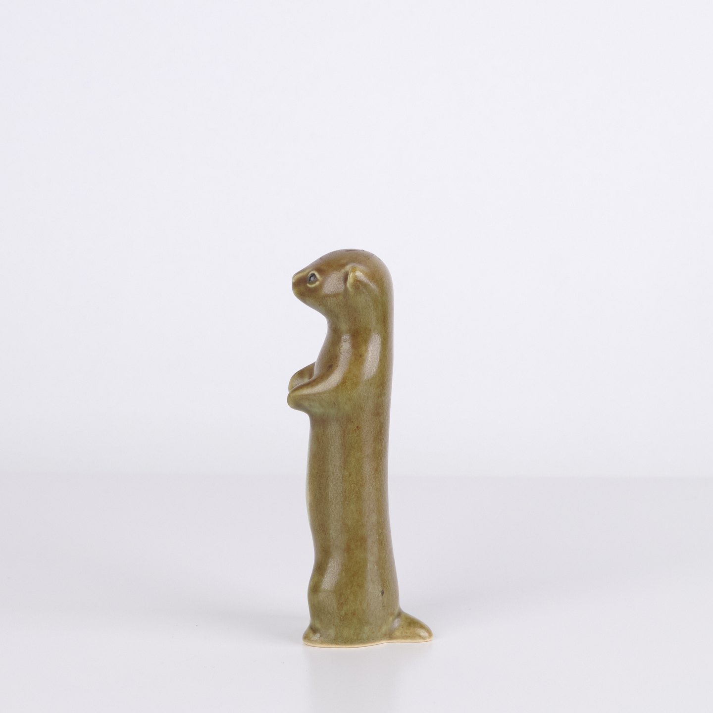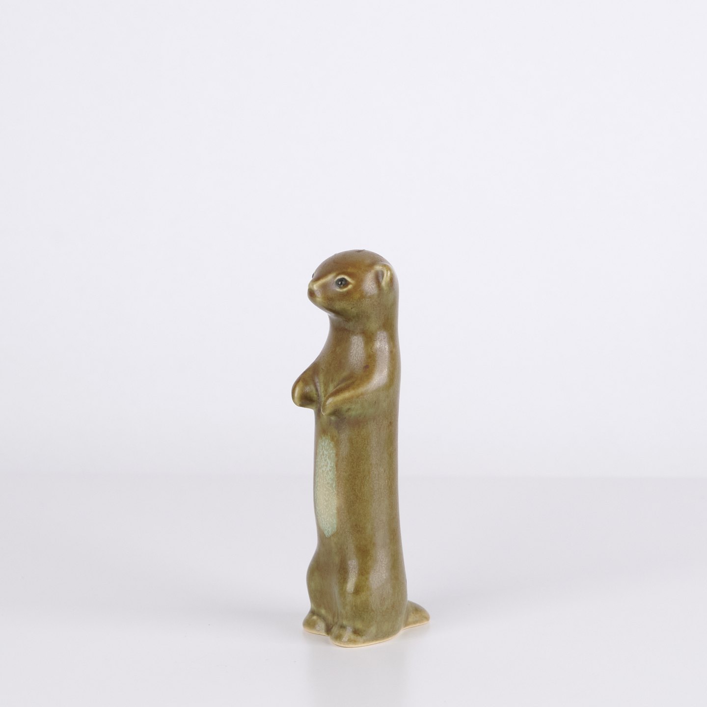 Animal figure by Knud Basse made in glazed ceramic. The figure depicts a ferret or stoat and was produced in Denmark in the 1960s. Knud Basse is known for ceramic animal figures with nature motifs and smaller production series from the period.