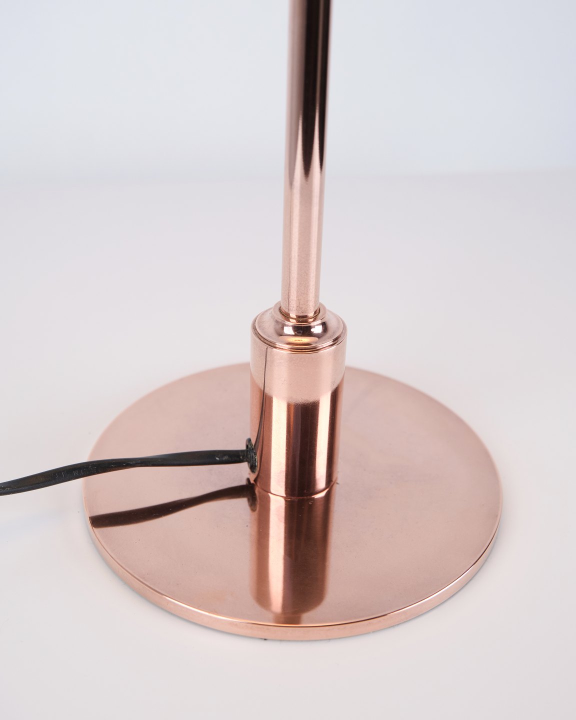 PH table lamp model PH 3½-2½ Limited Edition designed by Poul Henningsen and manufactured by Louis Poulsen. The lamp is made of copper with top shade in white opal glass and two lower shades in white opal glass. The model was sold for a limited period in 2015.